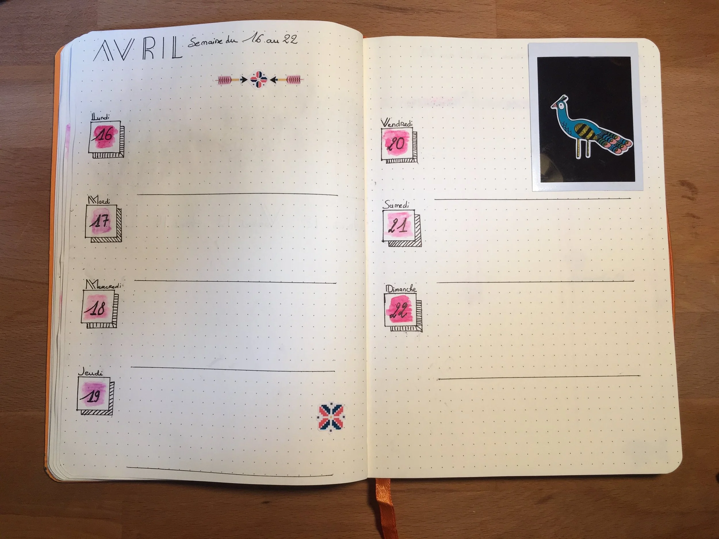 J’écris peu de choses au quotidien dans mon bullet aussi j’utilise exclusivement des semainiers. Voici ceux que j'ai préparés pour le mois. J'ai fait une première semaine de 8 jours car je voulais avoir vraiment tous les jours du mois d'avril dans mon bullet et ne pas utiliser une double page juste pour un seul jour.